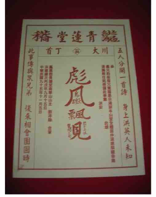 (以下は、負の過去として学修的な見地から記録用とする。中国語版で原文のまま掲載し、エセ洪門組織を告発し、真実を提示したターロウの切なる文書集である。)
